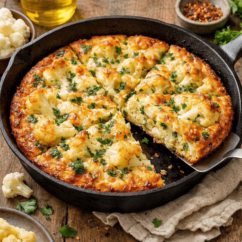 Die Kombination aus Blumenkohl, Zwiebeln und Knoblauch, die in einer Frittata mit Käse zart gekocht wird, ist einfach spektakulär.