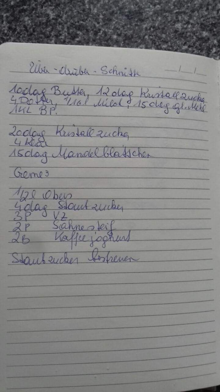 Aus den ersten Zutaten einen Rührteig machen, aus 4 Eiklar und 20 dag Zucker Schnee bereiten und raufstreichen. Mandelblättchen draufstreuen und bei 170 grad ca 25 min bàcken.